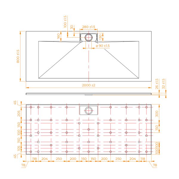 Материал исполнения SMC - стеклопластик или стеклокомпозит.Поддоны производятся на сложнейшем оборудовании под воздействием большого давления и высокой температуры.В результате получаются изделия по твердости поверхности не уступающие закалённому стеклу, а волокнистая структура материала и специальная конструкция поддонов позволяет выдерживать значительные механические нагрузки.Низкая теплопроводность материала, такая же как у дерева, позволяет поддерживать комфортную температуру поверхности поддона в процессе использования.