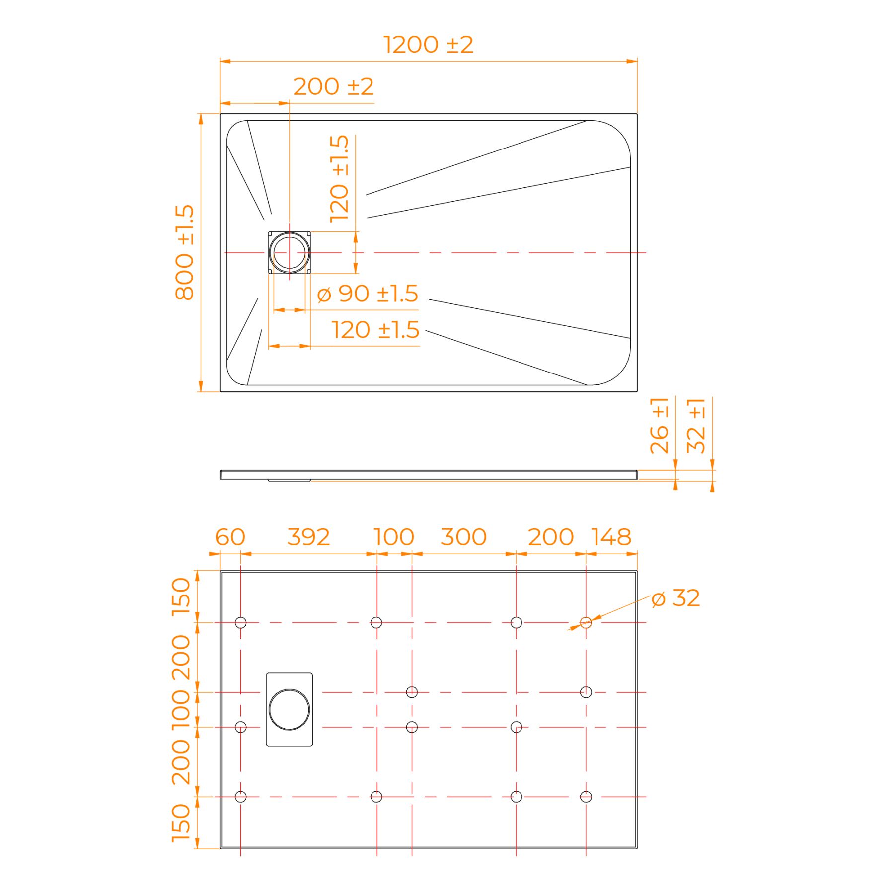 • Общая высота поддона: 26 мм.;