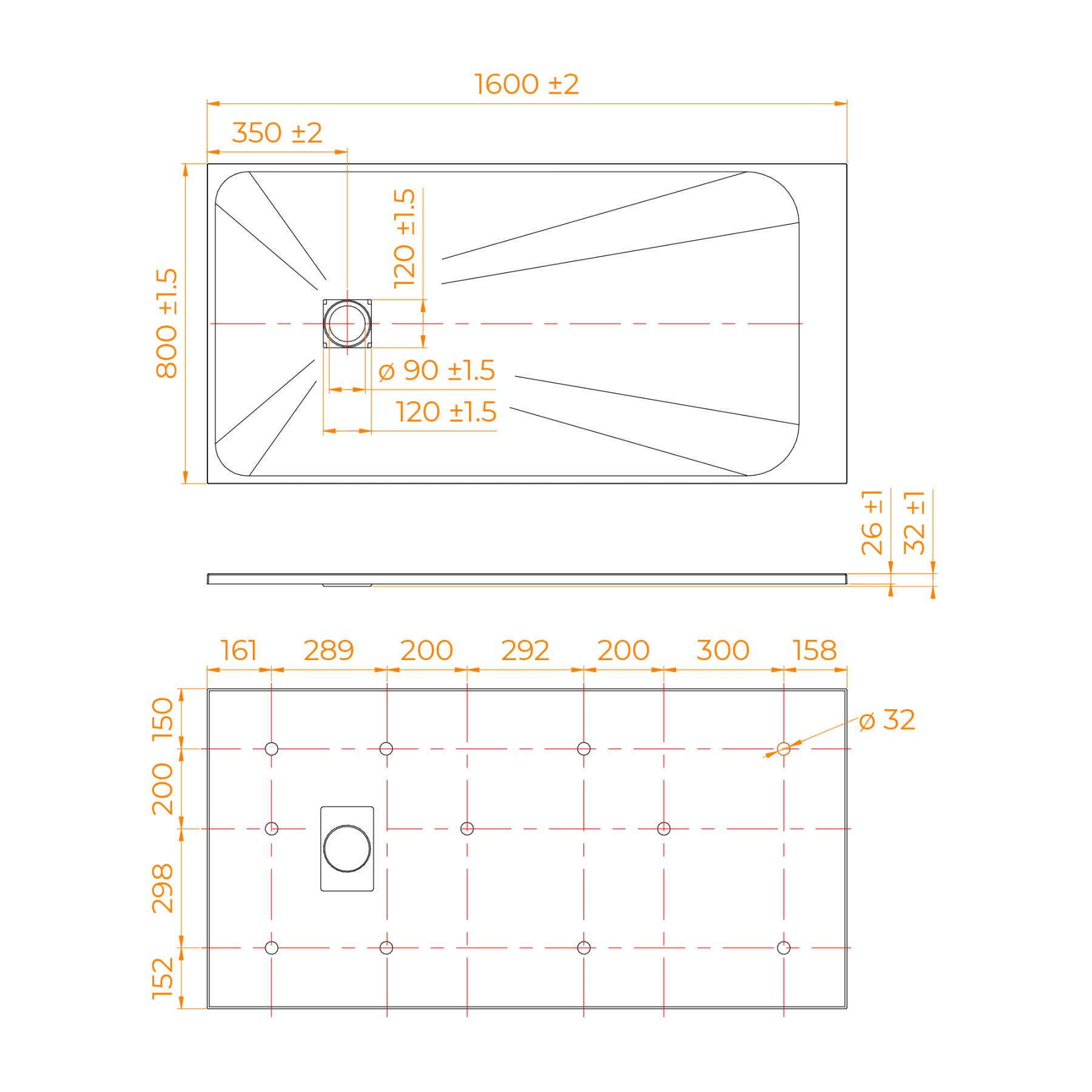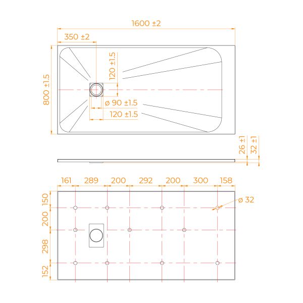 • Общая высота поддона: 26 мм.;
