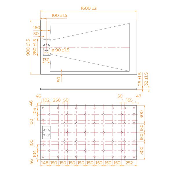• Общая высота поддона: 26 мм.;