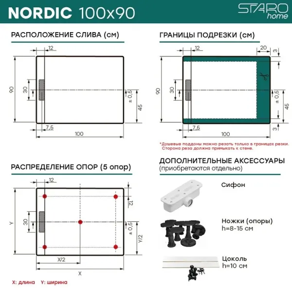 Душевой поддон Starohome NORDIC 21048471 100х90 см