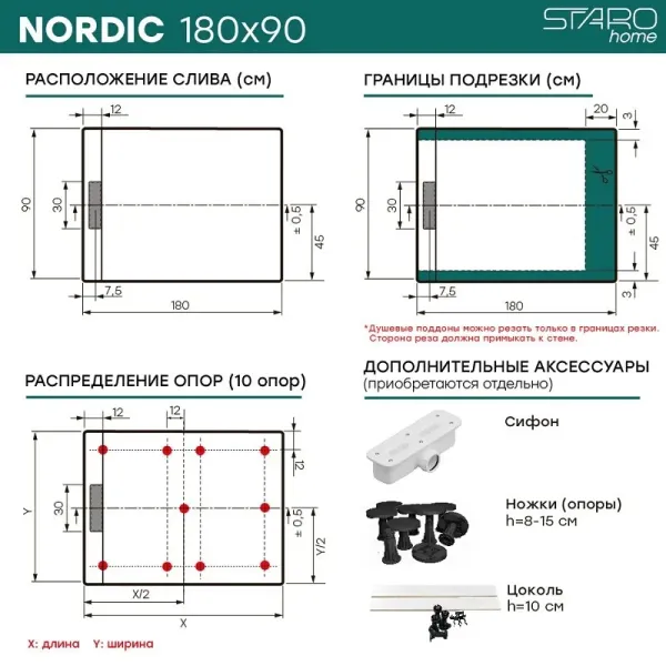 Душевой поддон Starohome NORDIC 72777688 180х90 см купить