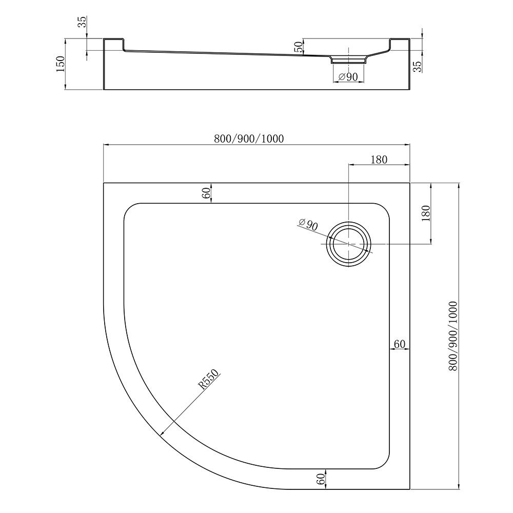 Душевой поддон Veconi Tezeo Acrylic TZ-51, 800x800x150, акрил, белый