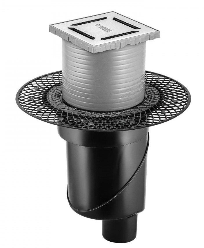 Решетка толщина 3мм, нержавеющая сталь AISI 304Горловина трапа, пластикФланец трапа с переходником, РРМонтажная заглушка, PPСамопромывной S-образный сифон PPВертикальный выпуск, пропускная способность 48л/мин, монтаж 360°Монтажный ключ, пластик