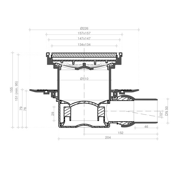 "Дизайн: Black glass (черное закаленное стекло), Рамка -"Хром глянец". Базы слива: 1 - с 1 выходом, 4 - S-образная. Материалы: металлические детали - нержавеющая сталь AISI 304 SS, корпус - ABS Технические характеристики: размеры решетки 100х100 мм и 150х150 мм, пропускная способность 48 л/мин, D=50 мм, поворот базы 360°, минимальная высота монтажа - 78 мм (для баз 1,2,3), 71 мм (для базы 4), 69 мм (для базы Vertical), гидрозатвор. 10х10 - комбинированный затвор 15х15 - гидрозатвор"