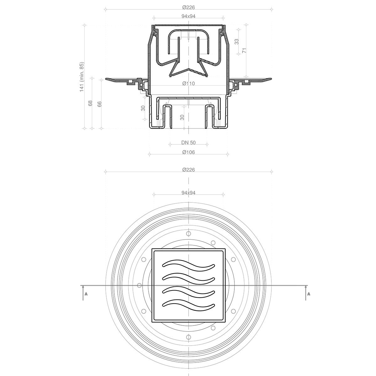 - Дизайн: металл с перфорацией Tide / Square / Drops, покрытие - хром/позолота 24К (999 проба). - Базы слива: 1 - с одним выходом, 2 - с 1 выходом/1 входом, 3 - с 1 выходом/3 входами, 4 - S-образный, Vertical - вертикальный выпуск. - Материалы: металлические детали - нержавеющая сталь AISI 304 SS, корпус - прочный, экологичный ABS полипропилен. - Технические характеристики: размеры решетки 100х100 мм, 150х150 мм, - пропускная способность 48 л/мин, D=50 мм, поворот базы 360°,- минимальная высота монтажа - 78 мм (для баз 1,2,3), 71 мм (для базы 4), 69 мм (для базы Vertical), - гидрозатвор.