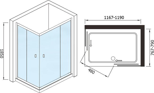 Душевой угол weltwasser СЕРИЯ WW200 Арт. 200QS22-12080 Размер 1200х800х1850 мм