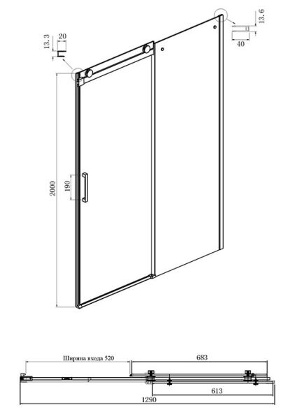 • Конструкция дверей: раздвижная