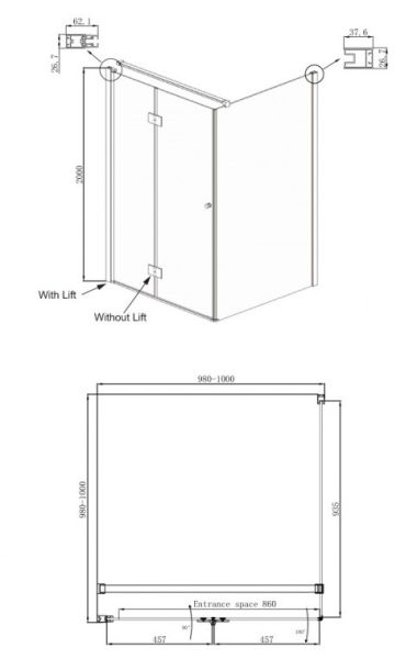 - Ширина входа: распашная часть 45.7 см, складная часть 86 см