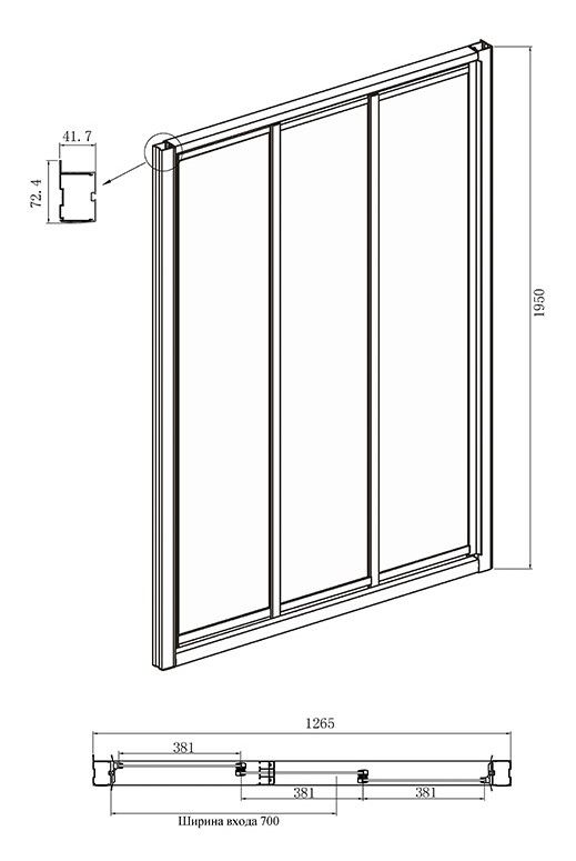• Конструкция дверей: раздвижная