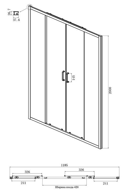 • Конструкция дверей: раздвижная