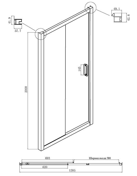 • Конструкция дверей: раздвижная