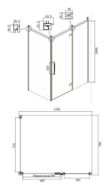 • Размеры (ШхВхД): 1190x2000х790 мм.