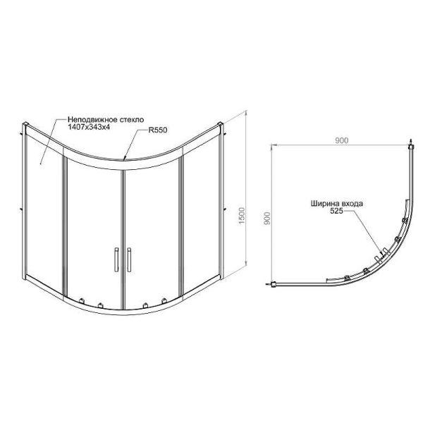 Душевой уголок AM.PM Gem 90х90 W90G-401A090BT профиль Черный матовый стекло прозрачное