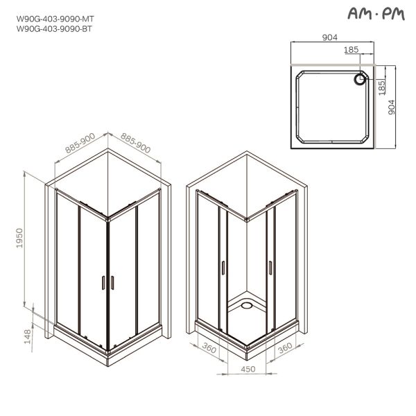 Душевой уголок Am.Pm Gem W90G-403-9090MT 90x90 см без поддона хром матовый купить