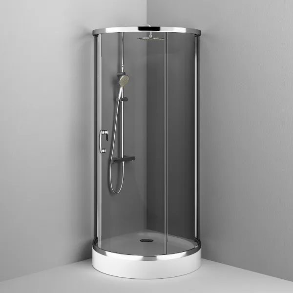 Душевой уголок AM.PM Like W83UG-333-095CG 95х95 см профиль хром стеклоДушевой уголок Am.Pm Like Round 95x95, стекло тонированное/профиль глянцевый хром