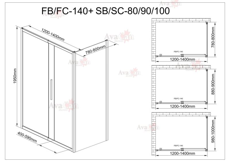 Душевой уголок AvaCan FB 120-140 + SB 80 MT чёрный
