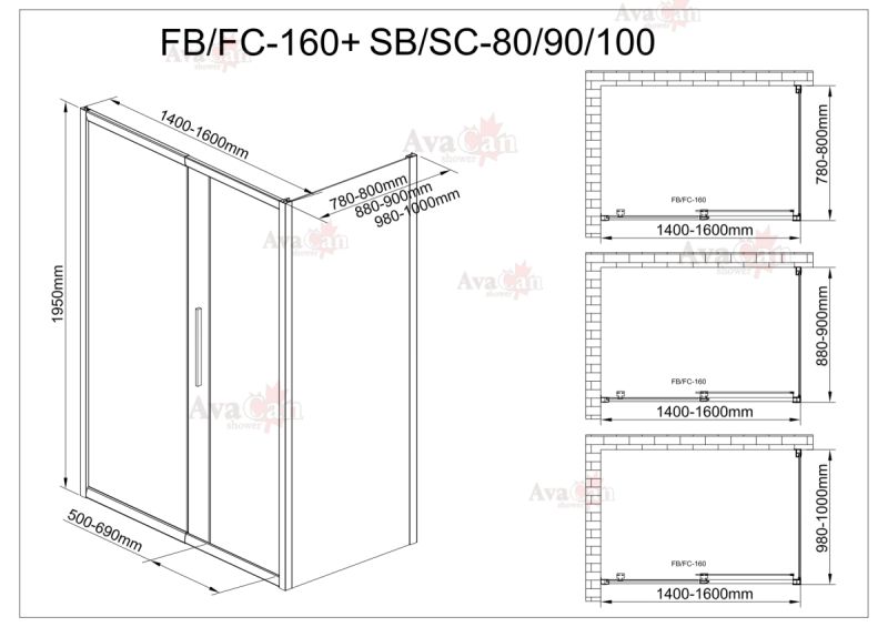 Душевой уголок AvaCan FB 140-160 + SB 100 MT чёрный