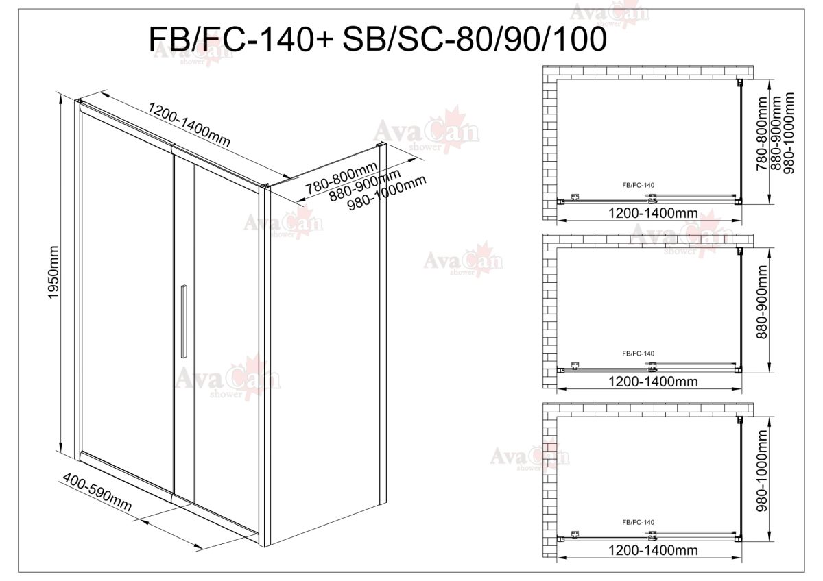 Душевой уголок AvaCan FС 120-140 + SС 90 MT хром