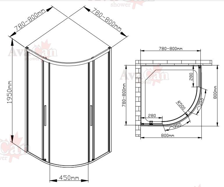 Душевой уголок AvaCan HC 80x80 см хром купить