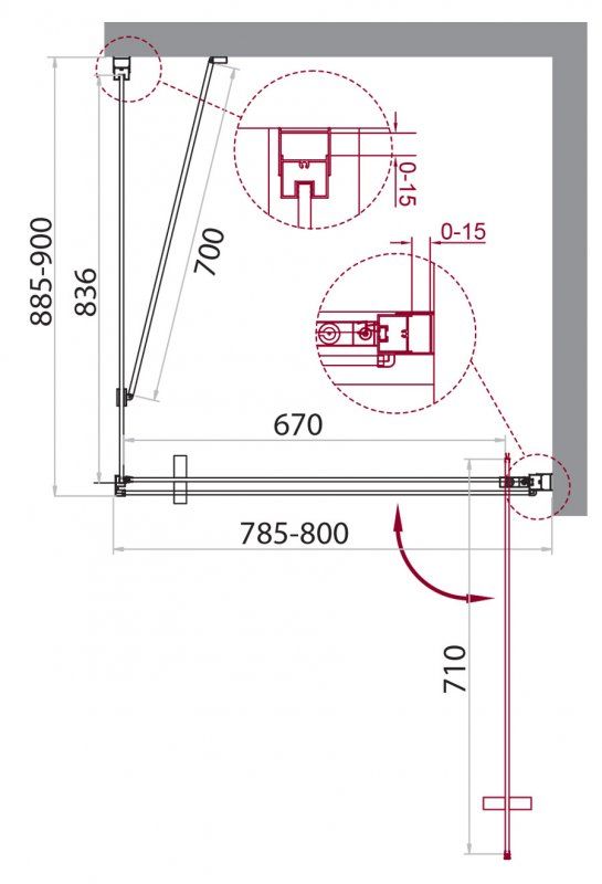 Регулируемый пристенный профиль, позволяет без проблем установить изделие даже при кривизне стен