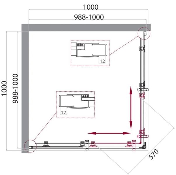 Регулировка ширины: предусмотрена за счет боковых профилей