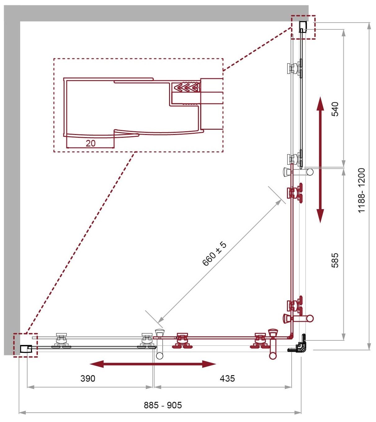 Регулировка ширины: предусмотрена за счет боковых профилей