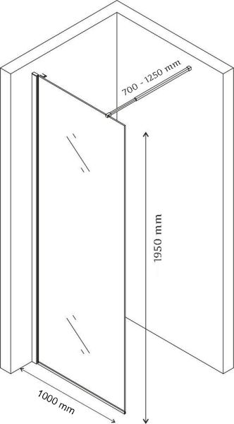 Душевая перегородка CeruttiSpa MUZA T100 выполнена из высококачественного материала.Регулировка ширины входа предусмотрена за счет верхнего телескопического кронштейн от 700 до 1250 мм.Размер: 100х195 см закаленное стекло (6 мм), прозрачное