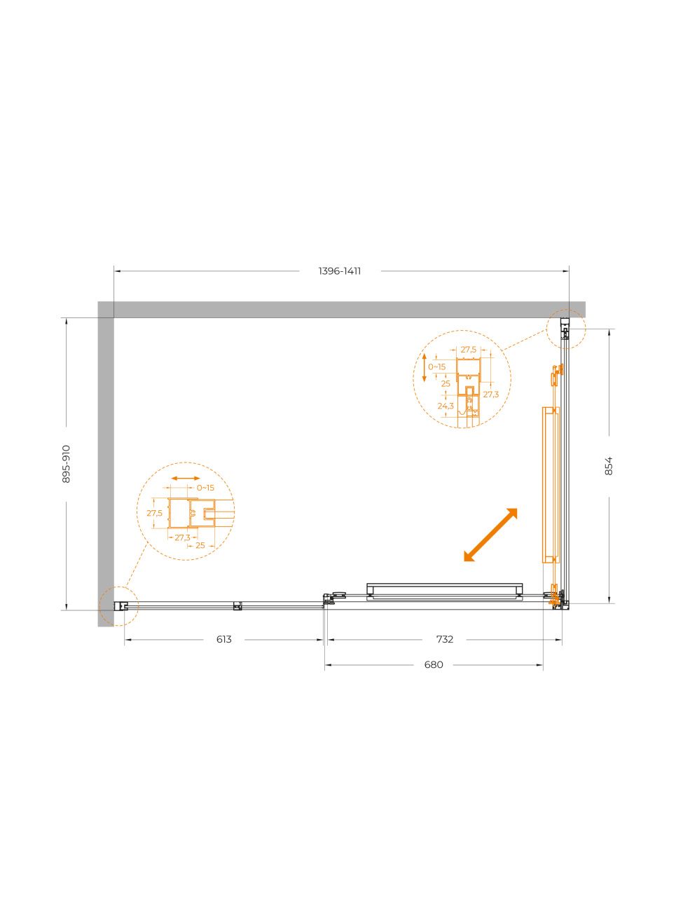 Душевой уголок CEZARES LUX-AH-FS-11-140/90-C-GM оружейная сталь купить