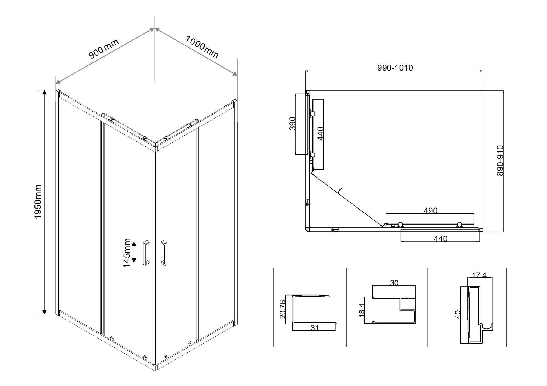 Душевой уголок Vincea City VSS-5CT9010CLGM, 1000*900, вороненая сталь , стекло прозрачное