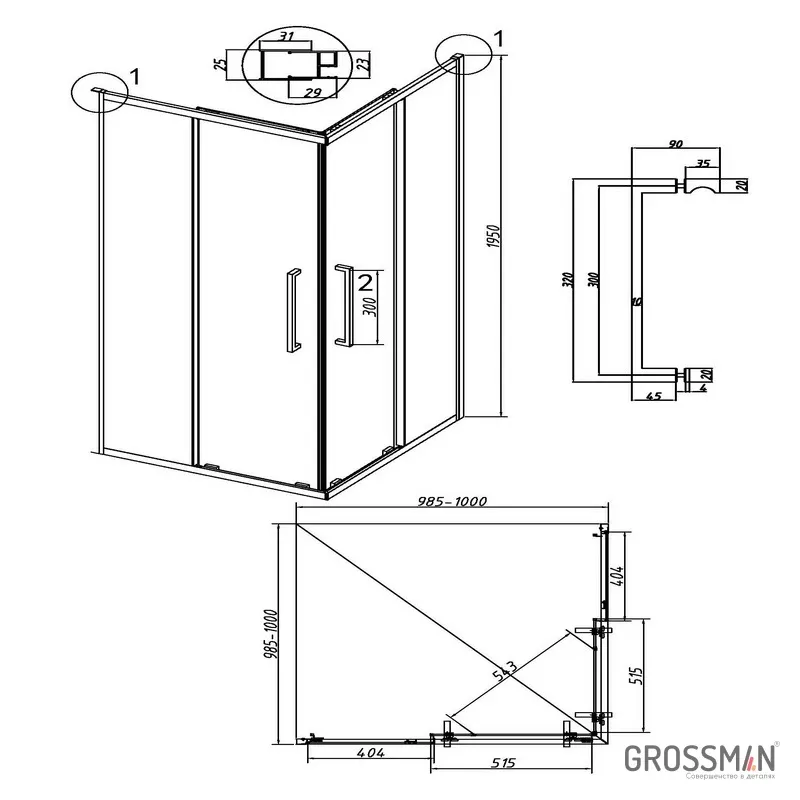 Душевой уголок Grossman Cosmo 300.K33.02.1010.21.10 100x100 см стекло тонированное профиль чёрный матовый купить