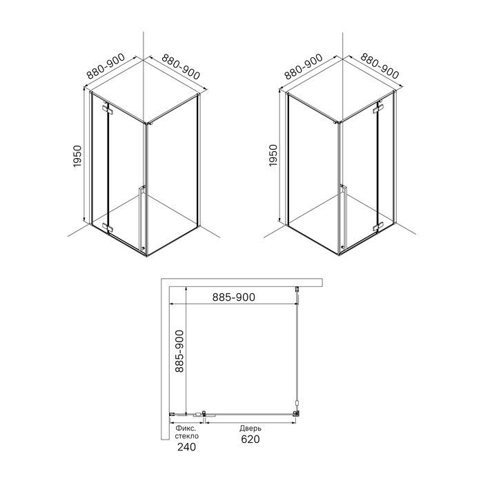 Душевое ограждение для ванной комнаты Slide стильного черного цвета – изящное решение для оформления ниши под душевую зону для тех, кто выбирает функциональный минимализм и чистые формы. Ограждение имеет удобный регулируемый размер 880-900х880-900х1950 мм, позволяющий сгладить неровность стен до 20 мм. Эргономичное решение для компактных пространств — установка двери возможна как с правой, так и с левой стороны.