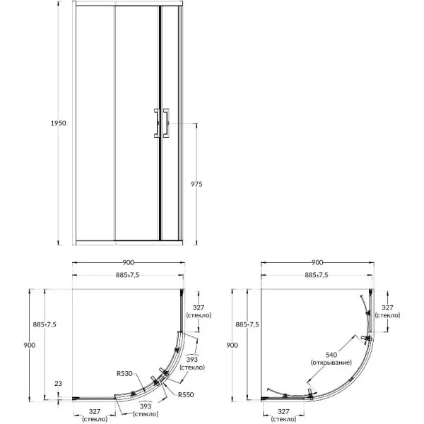 Преимущества раздвижного уголка VETRO: — Надёжная и удобная конструкция — алюминиевый профиль, двойные верхние ролики с подшипниками из нержавеющей стали, отстёгивающиеся нижние ролики, скрытый крепёж, стильная ручка с обеих сторон двери — Общая регулировка 15 мм (7.5 мм с каждой стороны) — Закаленное безопасное стекло 6 мм, водоотталкивающее покрытие «easy clean» — Лёгкая установка.