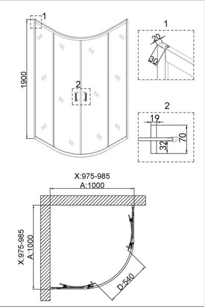 • душевое ограждение выполнено из анодированного алюминия с желто-золотым покрытием