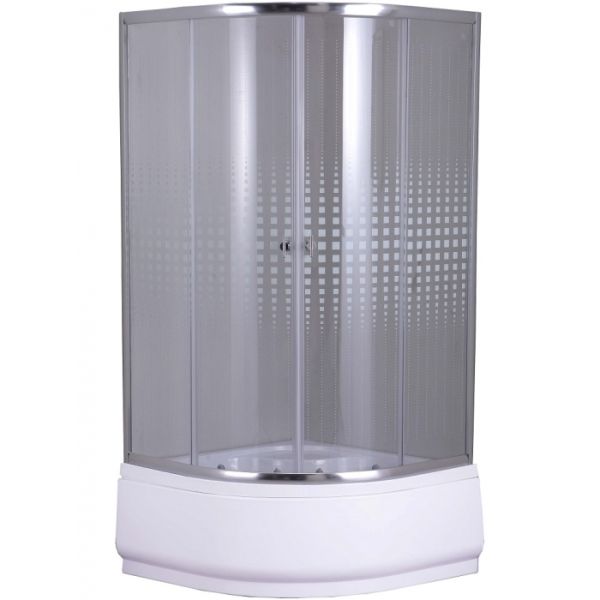 Уголок из прозрачного стекла с дизайнерским рисунком отлично дополнит оформление ванной комнаты. Закругленная форма экономит полезную площадь в санузле.Достоинства:Закаленное стекло 4 мм.Высокий поддон 42 см, который можно использовать в качестве ванночки для замачивания вещей или купания детей.Раздвижные двери на одинарных роликах ходят плавно, не соскакивают с направляющих.Полированный алюминиевый профиль не подвержен коррозии.Сифон входит в комплект.
