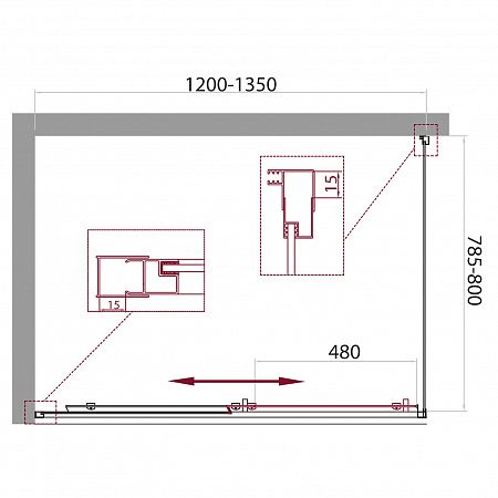 Душевой уголок прямоугольный, хром BelBagno UNIQUE-AH-1-120/135-80-C-Cr