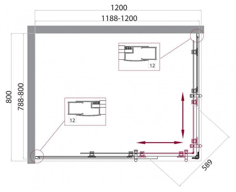 Душевой уголок прямоугольный, хром BelBagno UNO-195-AH-2-100/80-C-Cr