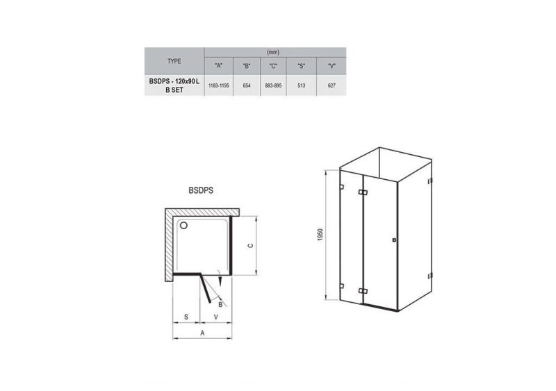Душевой уголок Ravak Briliant BSDPS-120/90 L 0ULG7A00Z1 Transparent профиль хром левый купить