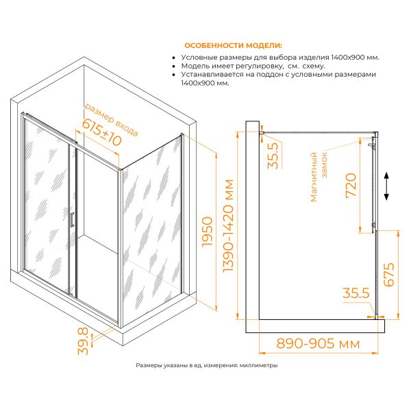 Душевой уголок RGW Classic CL-133B (CL-13 + Z-03), 060913349-44, 140 х 90 см, дверь раздвижная, ... Подробнее