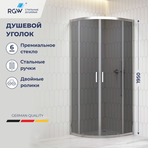 Высота сборного комплекта душевого угла – 2100 мм достигается совместно с душевым поддоном RGW BP/CL-S , на который и устанавливается душевое ограждение. При комплектации с другими поддонами высота будет изменятся в соответствии с высотой душевого поддона.Длина х Ширина: 800х800; 900х900;