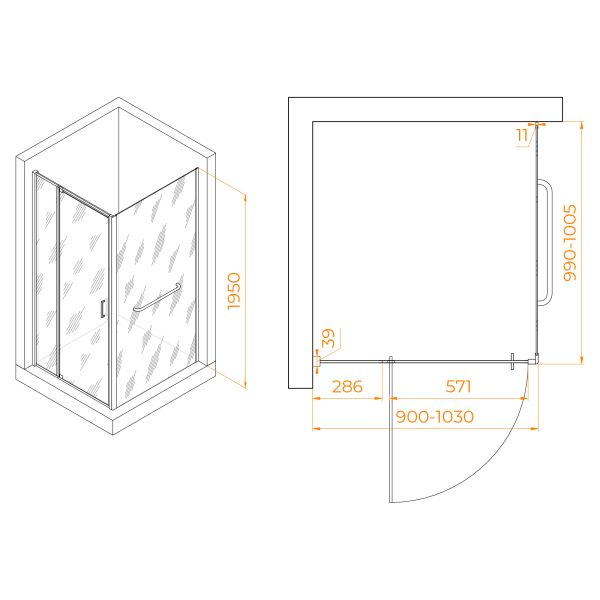 Душевой уголок RGW PA-078-1 (RGW PA-008 + Z-060-2) 3508078190-11 90x100см хром