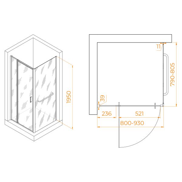 Душевой уголок RGW PA-078-1B (RGW PA-008B + Z-060-2B) 3508078188-14 80x80см чёрный