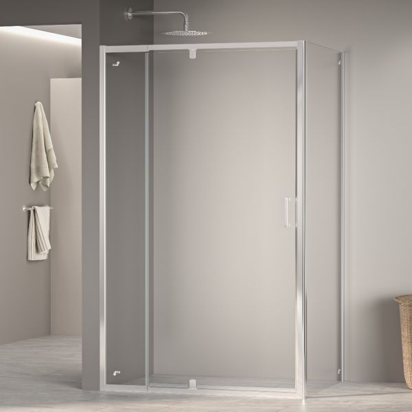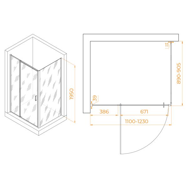 Душевой уголок RGW PA-078 представляет собой комплект из распашной душевой двери RGW PA-008 и боковой панели RGW Z-050-2, образующий прямоугольную конструкцию размером 110 х 90 см с регулируемыми габаритами (1100-1230)×(890-905) мм. Для использования потребуется отдельно приобрести трап или поддон.