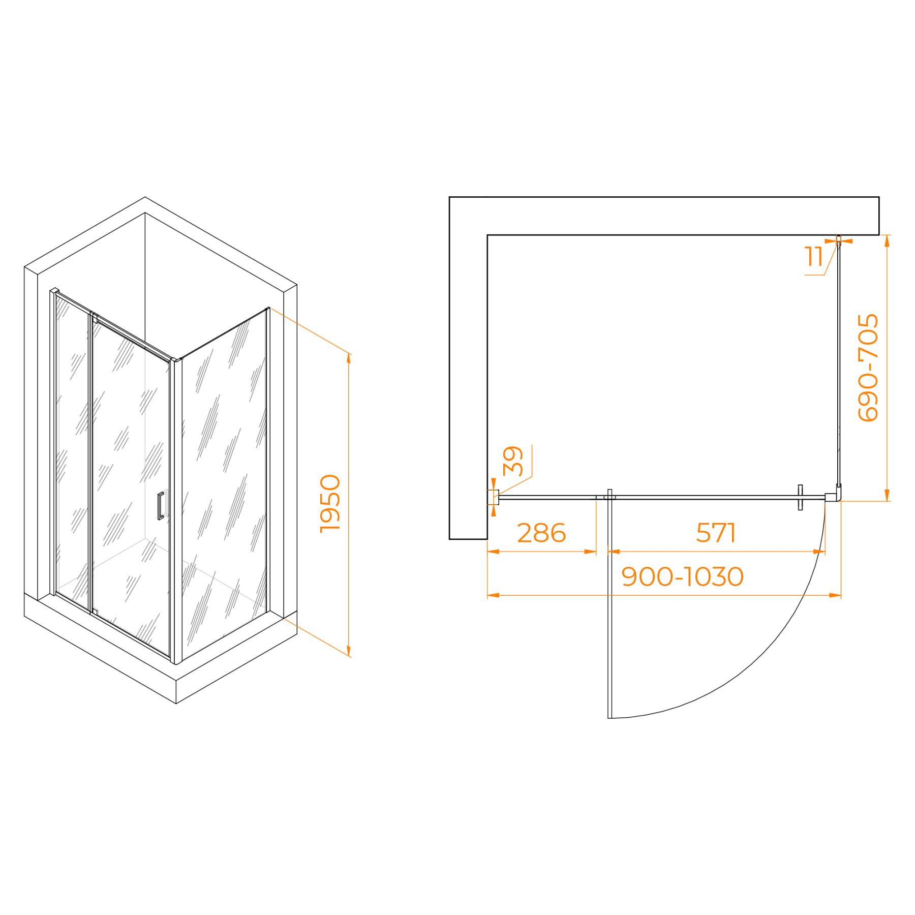 Душевой уголок RGW PA-078 (RGW PA-008 + Z-050-2) 350807897-11 90x70см хром