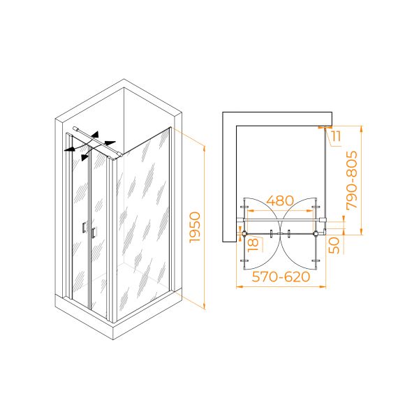 Душевой угол PA-144B (PA-104B+Z-050-2B+O-104B) является превосходным выбором для создания комфо... Подробнее