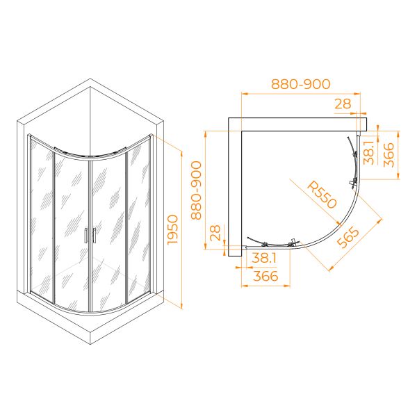 Высота данного душевого уголка составляет 195 см, что обеспечивает достаточное пространство для комфортного принятия душа. Высота, в сочетании с остальными параметрами, делает этот уголок идеальным выбором для семейного использования и для людей различного роста.