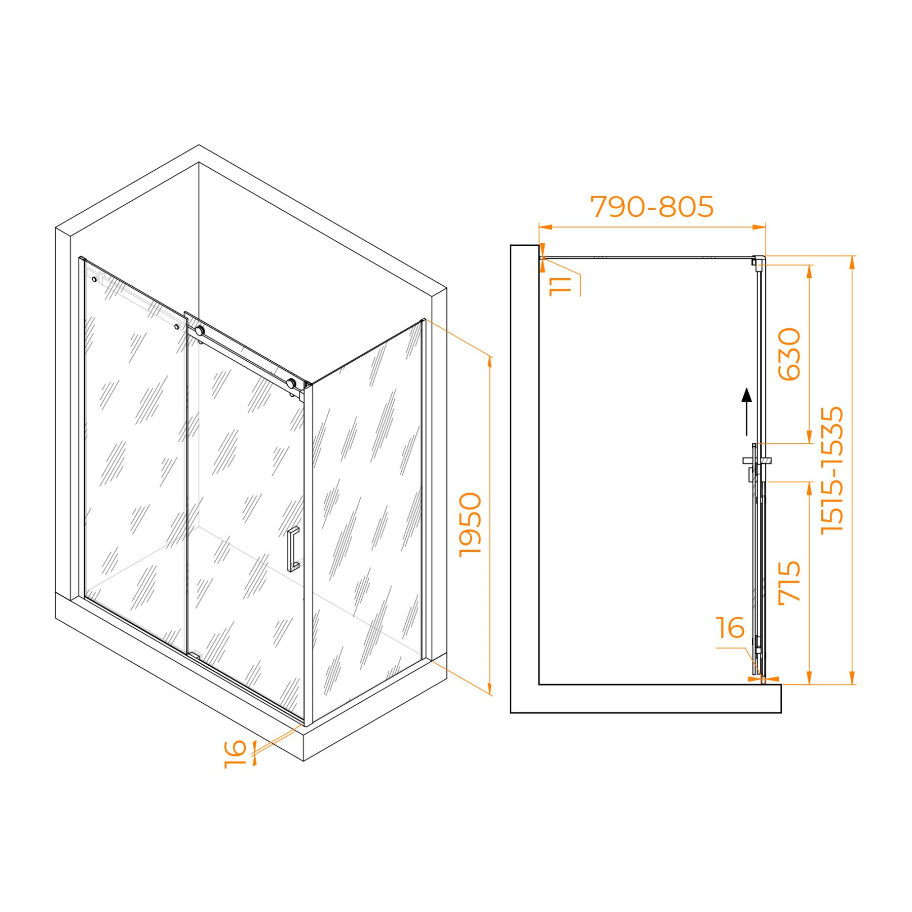 Душевой уголок RGW TO-44-1B (TO-14B + Z-060-2B) 020744158-14 150x80см чёрный купить