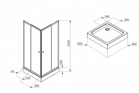 Душевой уголок с поддоном PARLY ZFQ81B (80х80х193)