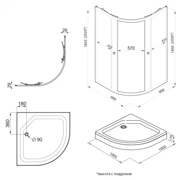 Высота с поддоном: 202 см