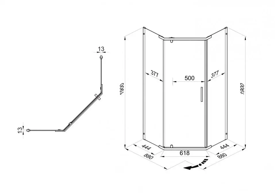 Душевой уголок Без поддона Размер: 90 x 90 x 190 см Конструкция дверей: раcпашная ... Подробнее